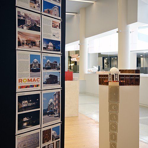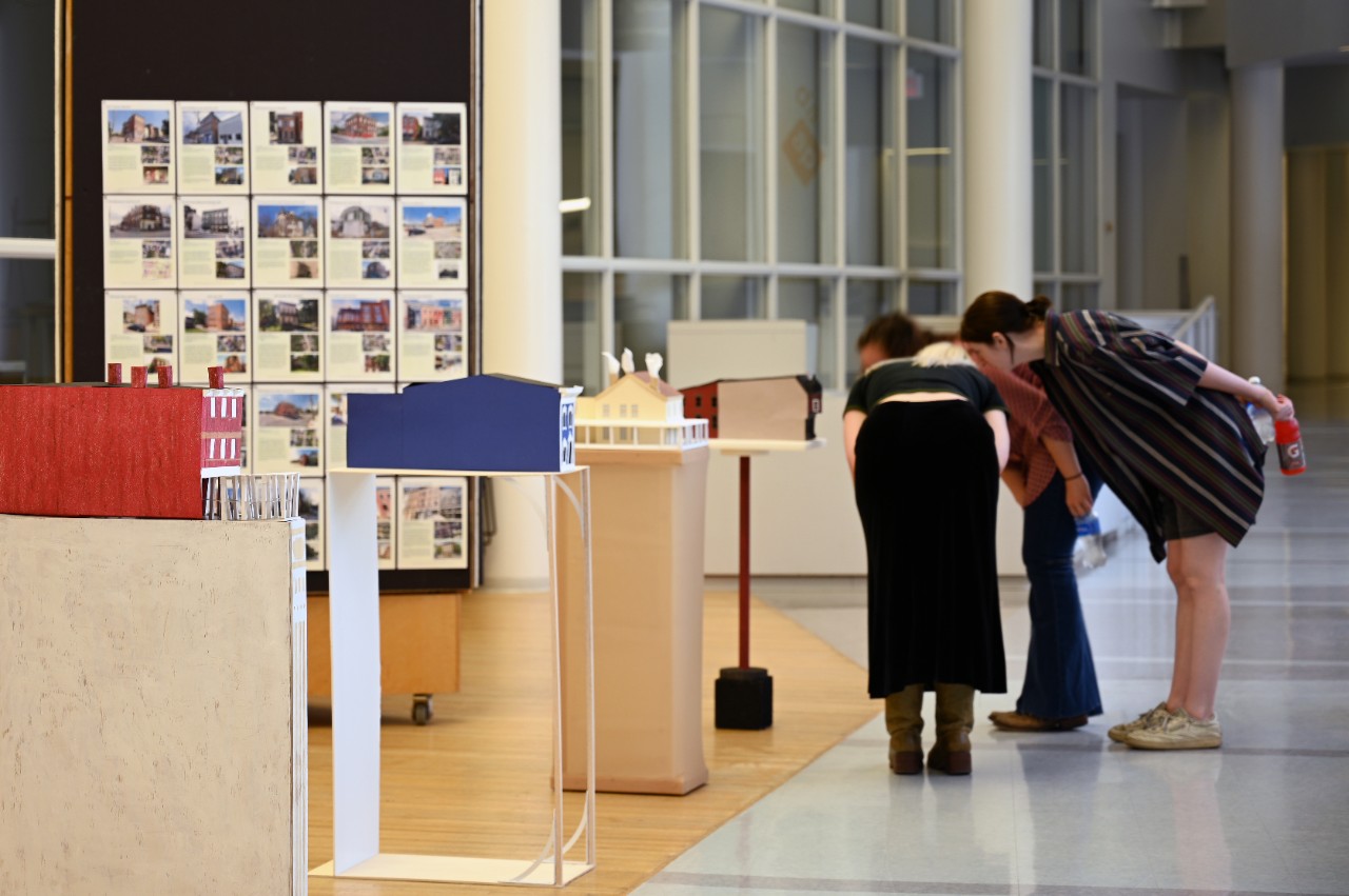 Cincinnati Reuse Collective falls somewhere between an urban research course, a building survey course, and a making course. The course uncovers the urban scale forces at play in Cincinnati through a survey of buildings under the city’s Historic Structure Stabilization Program. Acting as tourists within the city, students visited diverse neighborhoods learning about buildings in various phases of the program, many of which are under repair through partnerships between the city, individuals, and organizations anticipating new uses. Each student selected a single building to study in more detail and model in two forms: a building model, and a model stand inspired by the building. These models acknowledge the buildings’ past lives while positing a future that is at once imaginative and hopeful.
