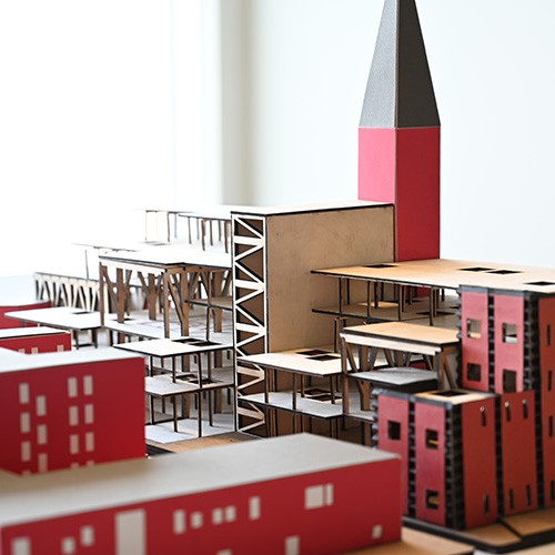 As the Over-the-Rhine neighborhood in Cincinnati continues to grow, it needs more affordable housing and spaces for community organizations. Partly rooted in research and partly rooted in hands-on making, this course explores the design of buildings that combine both housing and collective amenities. The resultant projects challenge the typical relations of private and shared space as defined in the urban block. Furthermore, the use of mass timber construction nestled within the existing historic fabric celebrates and gives visibility to these spaces and their ability to shape the neighborhood’s future.